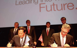 2010-04-08 福田汽车总经理王金玉,米兰·体育公司在线网站-米兰(中国)集团副总裁曹思德签署联合开发欧六排放及清洁能源载重汽车合作协议